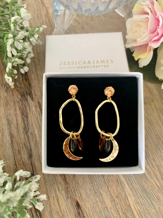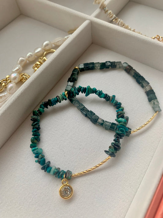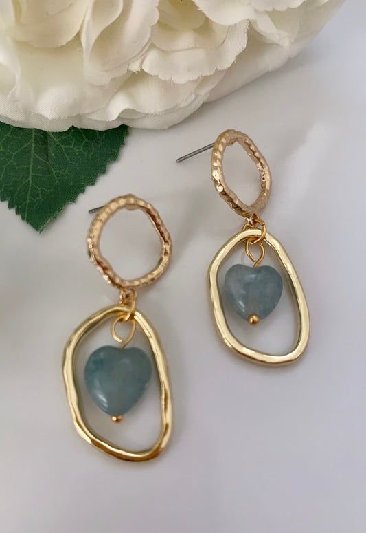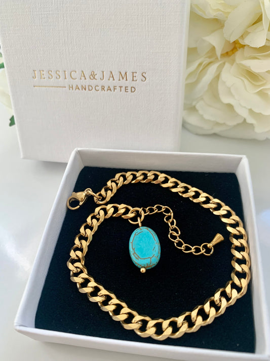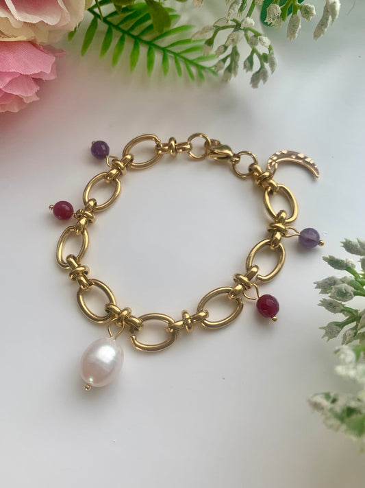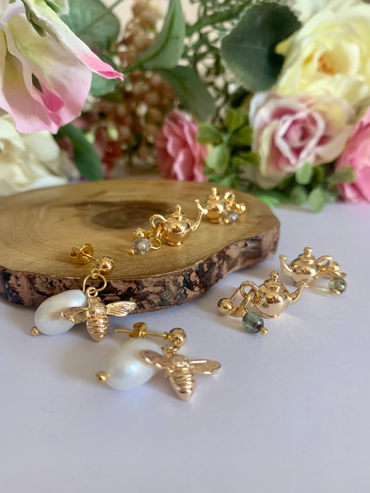 Clara- Freshwater pearl charm necklace - natural semi precious stone heart and gold teapot detail