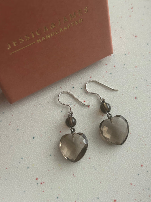 Sterling silver Smokey quartz heart earrings