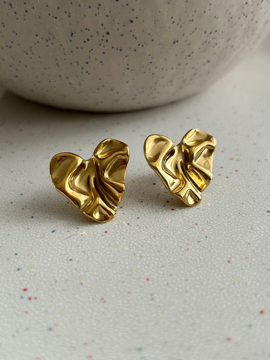 Sold outCrushed paper effect heart earrings
