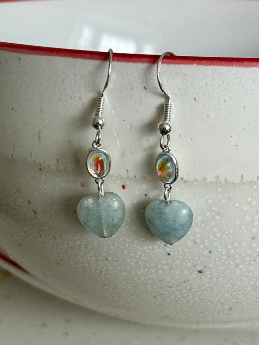 Sterling Silver moonstone angelite heart drop earrings