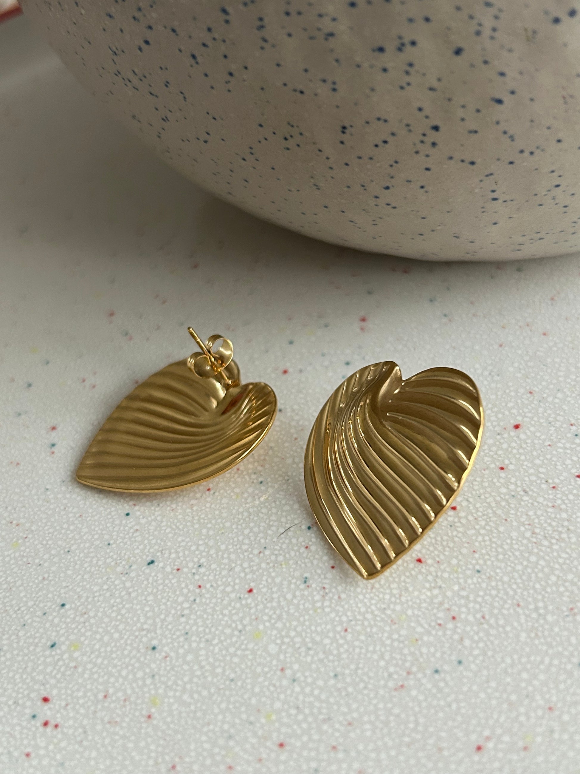 Statement yet refined our chocolate box heart stud earrings are the perfect size.  Ultra lightweight for all day wear, they feature a gorgeous striped detailing. Pair with any outfit/ any season. Striking effortless glamour