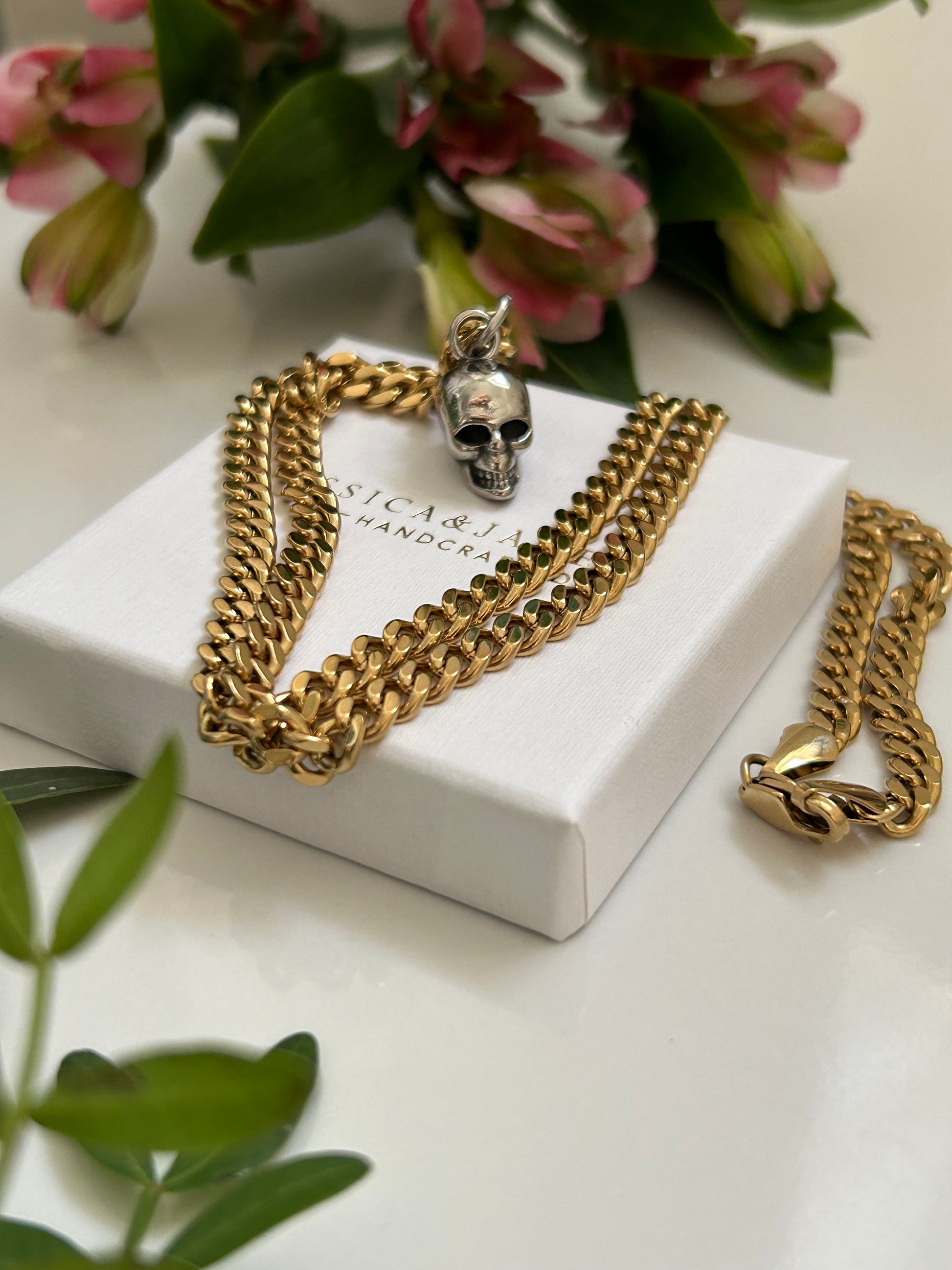 Skull Queen - Stunningly striking design in mixed tone metals featuring a 6mm curb chain with a contrasting silver skull charm