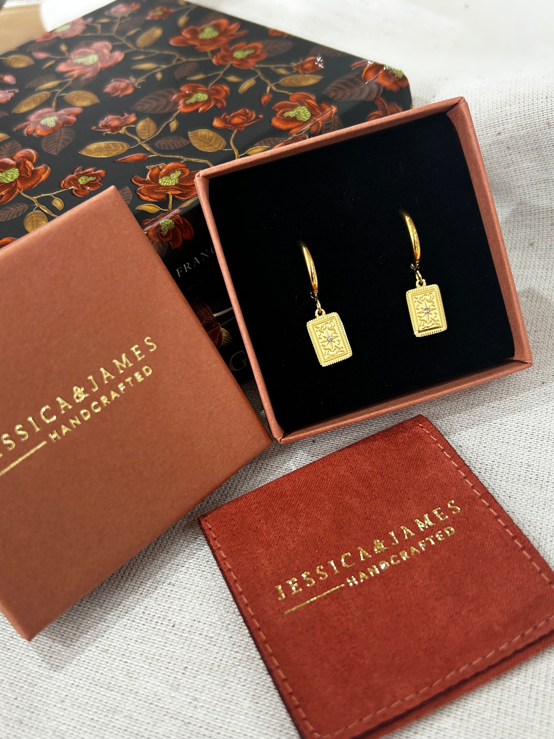 Your earrings will arrive in their own branded Jessica&James jewellery box and velvet travel pouch to keep your jewellery at its best
